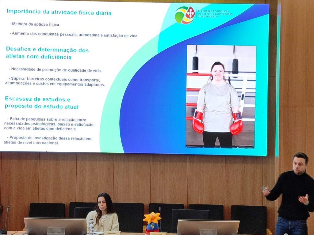 “A paixão pelo desporto como mediador entre as necessidades psicológicas básicas e a satisfação com a vida dos atletas com deficiência” — Apresentado por Filipe Rodrigues; “Influência do coaching desportivo na performance da mulher atleta: perspetivas de atletas e treinadores de elite” — Apresentado por Rita Ribeiro e “Autoestima, capacidade física percebida e qualidade de vida de praticantes de atividade física e desportiva com deficiência” — Apresentado por Inês Garrana.