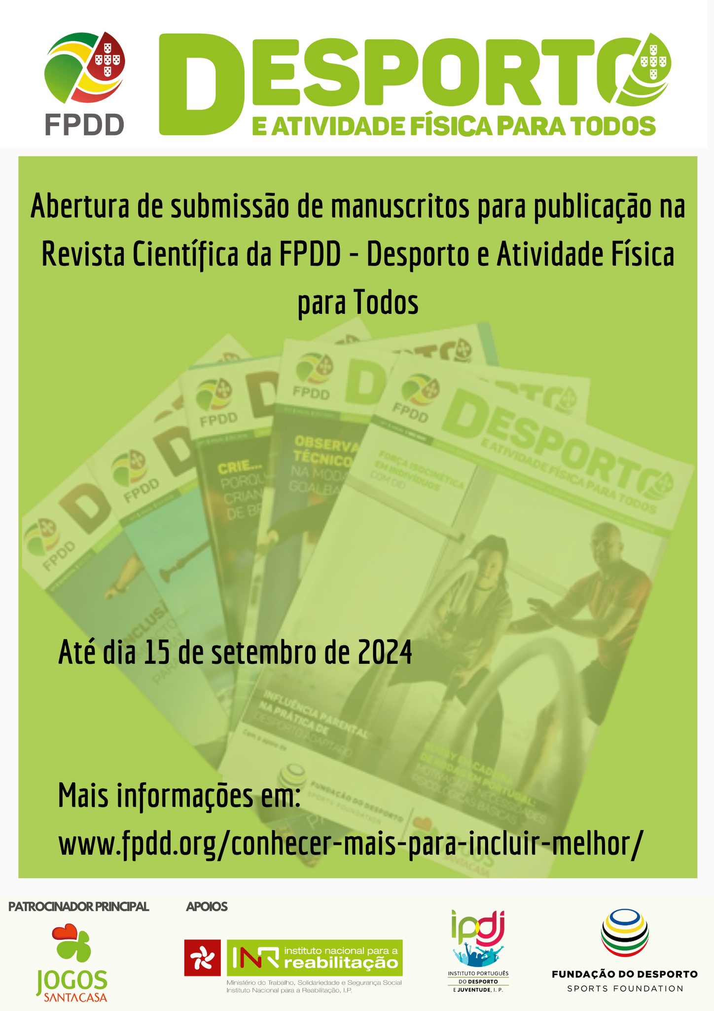 Abertura de submissão de manuscritos para publicação na Revista Cientifica da FPDD – “Desporto e Atividade Física para Todos”