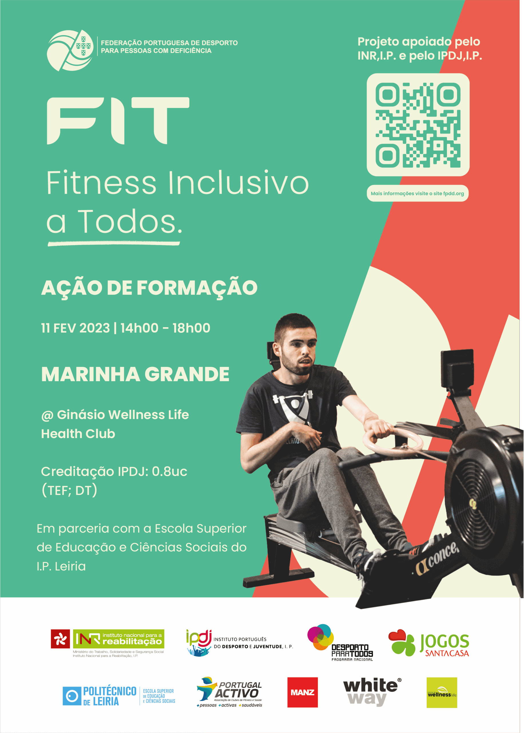 No âmbito do Projeto FIT — Fitness Inclusivo a Todos 2023, a Federação Portuguesa de Desporto para Pessoas com Deficiência (FPDD) em parceria com a Escola Superior de Educação e Ciências Sociais de Leiria (ESECS), irá organizar uma Ação de Capacitação, dirigida a Diretores Técnicos (DT) e Técnicos de Exercício Físico (TEF), que pretendam intervir no domínio da atividade física regular para Pessoas com Deficiência e Incapacidade.
