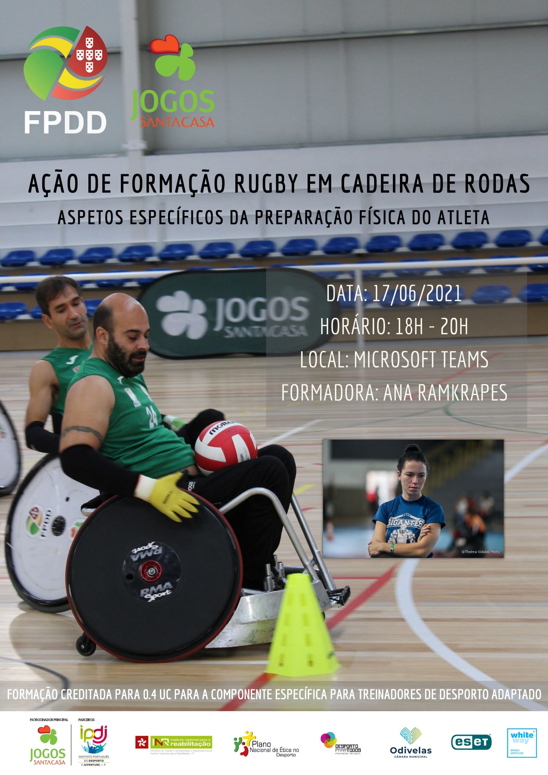 No dia 17 de junho, às 18h00, a FPDD irá realizar uma formação on-line de Rugby em Cadeira de Rodas para Treinadores, Técnicos e Professores que intervêm no Desporto para Pessoas com Deficiência.