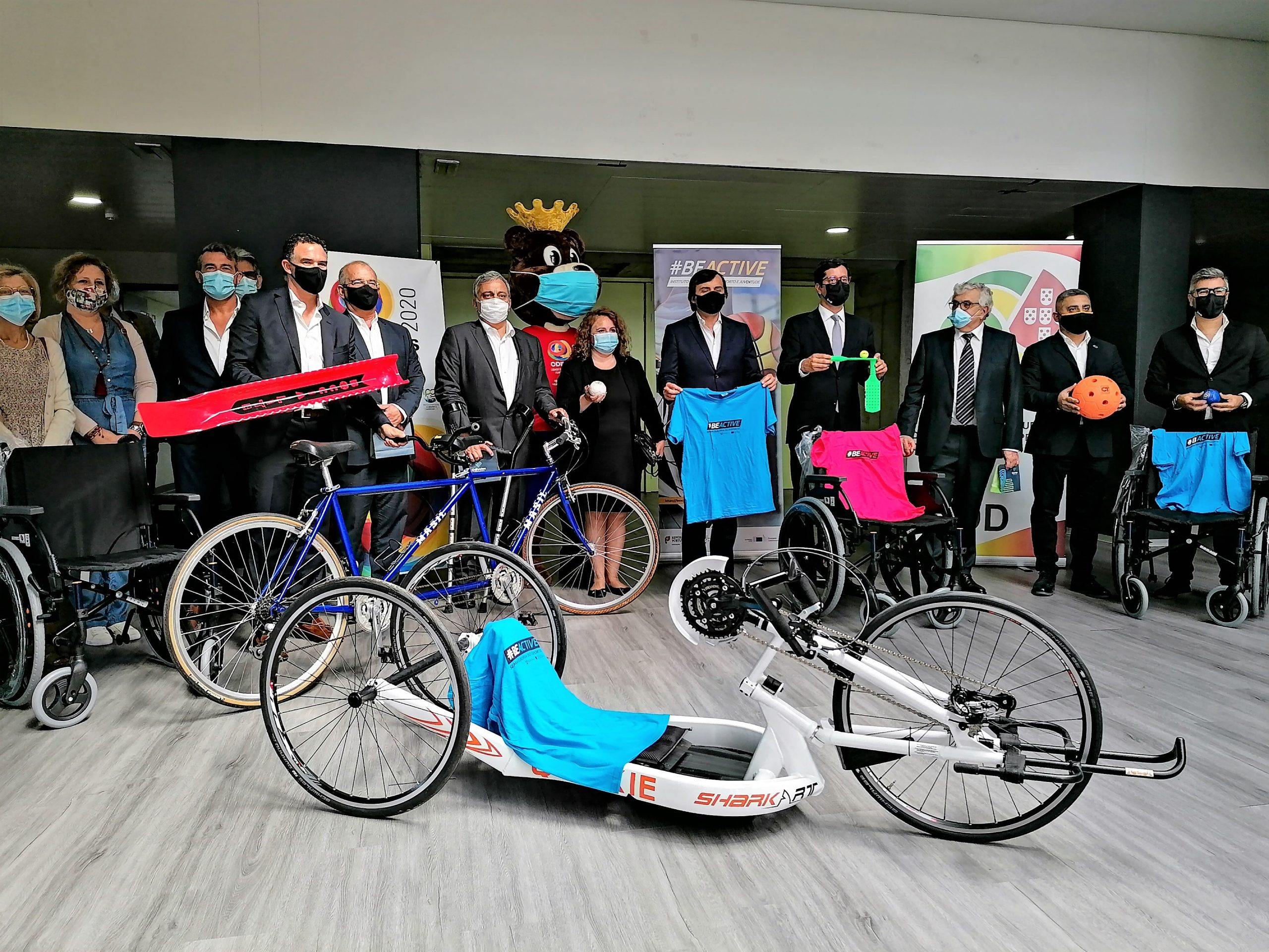 Os conjuntos de kits a entregar são acompanhados por um documento orientador, com sugestões de aplicação prática nos contextos de sensibilização / recreação e de iniciação à competição. O material a disponibilizar é composto por 29 kits de desporto inclusivo sendo 24 (1 para cada CLDE) com um conjunto de 6 vendas e uma bola de iniciação ao Goalball, um kit de Polybat, uma calha de Boccia e quatro cadeiras de rodas com roda estabilizadora, e 5 kits (1 por cada região), contendo três bicicletas tandem (para duas pessoas) e uma bicicleta de propulsão manual (handbike).