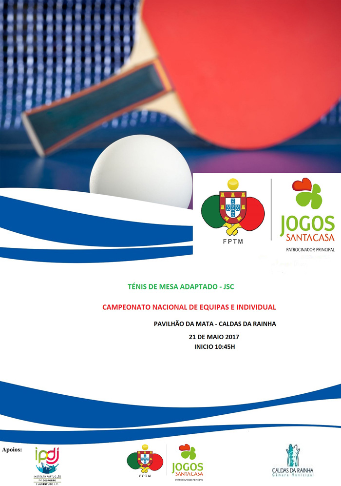 Os Campeonatos Nacionais de Equipas e Individual de Ténis de Mesa Adaptado realizam-se no dia 21 de maio, no Pavilhão da Mata, nas Caldas da Rainha, a partir das 10h45.