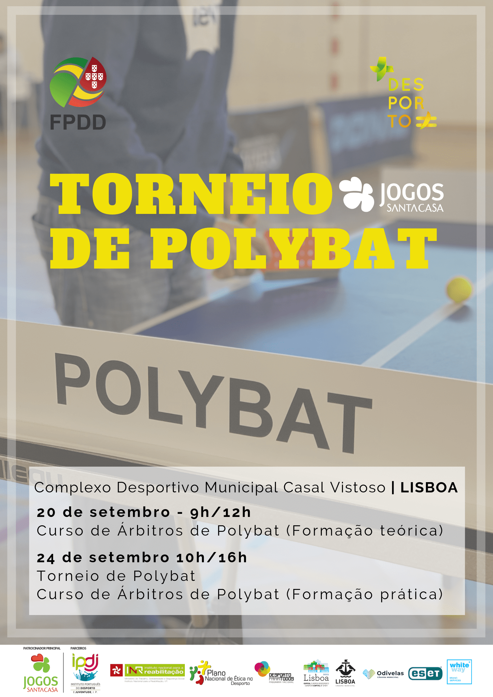 No âmbito do projeto “+ Desporto ≠”, a Federação Portuguesa de Desporto para Pessoas com Deficiência (FPDD) vai realizar um Torneio de Polybat “Jogos Santa Casa”, no dia 24 de setembro, das 10 às 16 horas, no Pavilhão do Complexo Desportivo Municipal do Casal Vistoso.