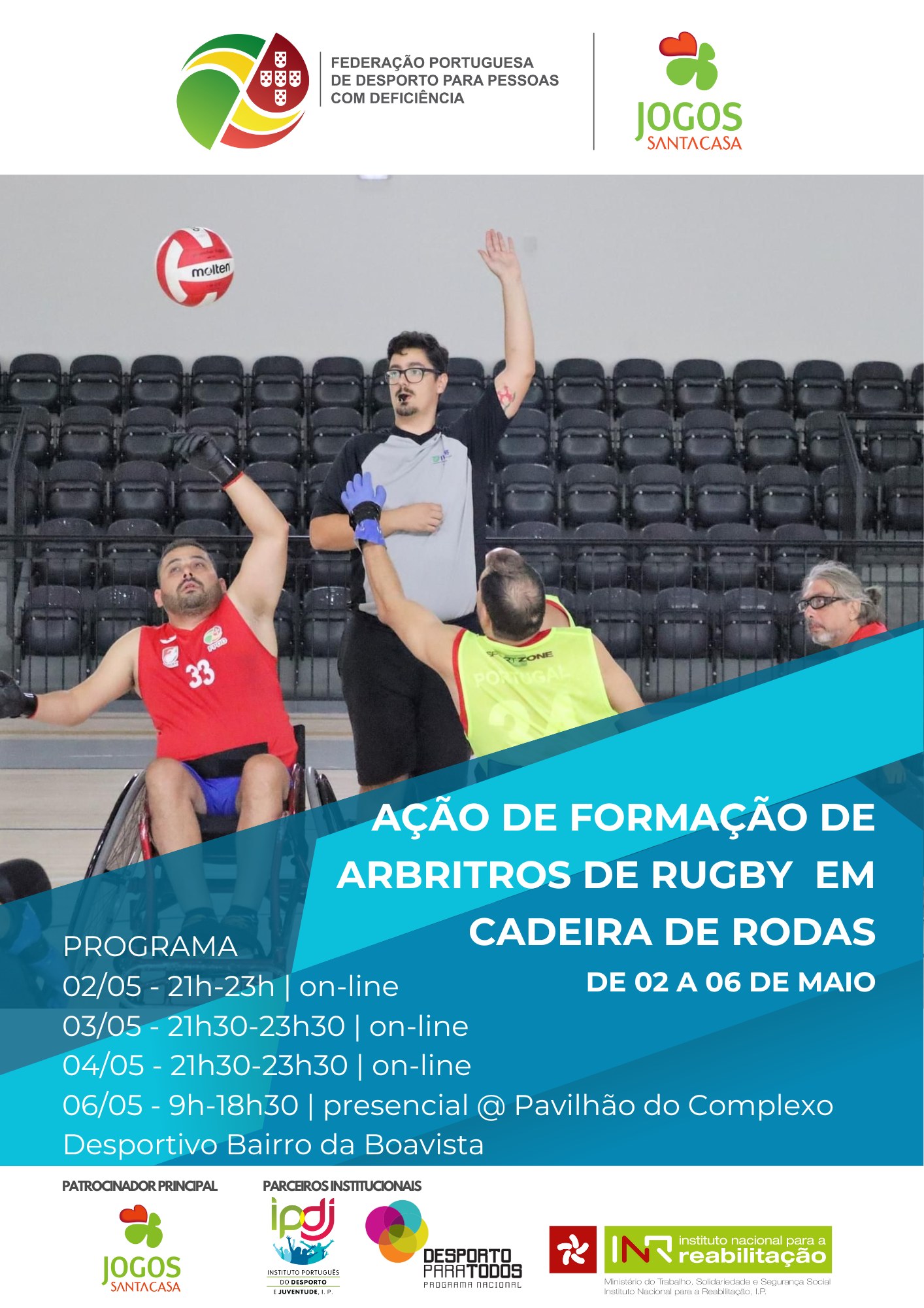 A FPDD irá realizar entre os dias 2 e 6 de maio um curso de árbitros de Rugby em Cadeira de Rodas. Este curso terá uma componente teórica on-line de 6h e uma componente prática presencial de 9h que se realizará no Pavilhão do Complexo Desportivo do Bairro da Boavista.