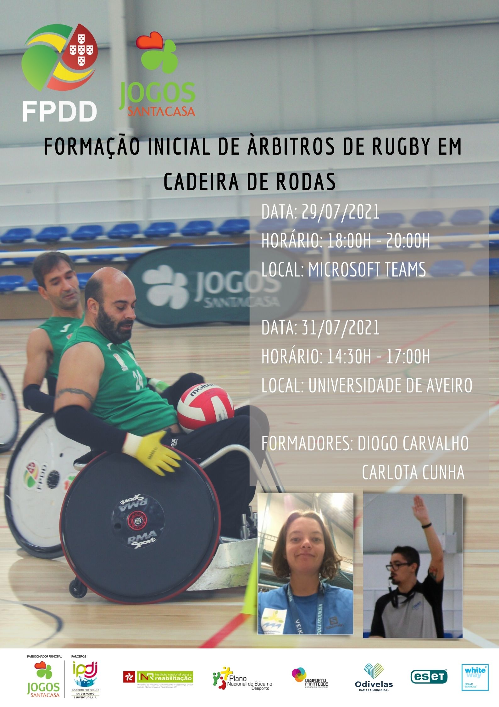 Esta ação tem como objetivo formar novos árbitros de forma a que possam iniciar o desempenho das funções de arbitragens nas futuras competições de Rugby em Cadeira de Jogos em Portugal, e a inscrição poderá ser feita clicando aqui, até 28/07/2021.