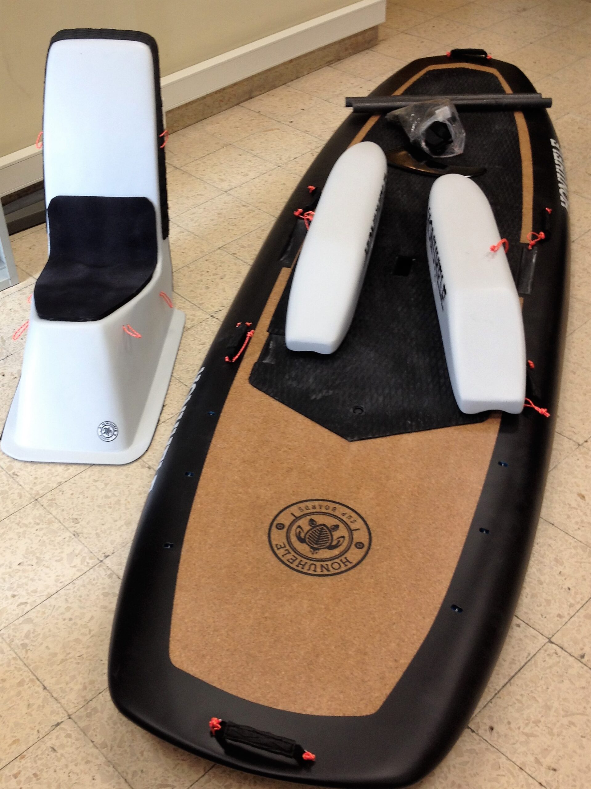 Esta prancha é única em Portugal (que tenhamos conhecimento), tem 3,05 metros de comprimento por 0,94 de largura, revestimento em cortiça e superfície anti-derrapante, dois flutuadores laterais e uma cadeira específica amovível podendo, também, ser utilizada com uma cadeira de rodas regular; possibilita que duas pessoas a utilizem simultaneamente, por exemplo, com um adulto em pé à retaguarda, e tem duas pagaias com alturas ajustáveis.