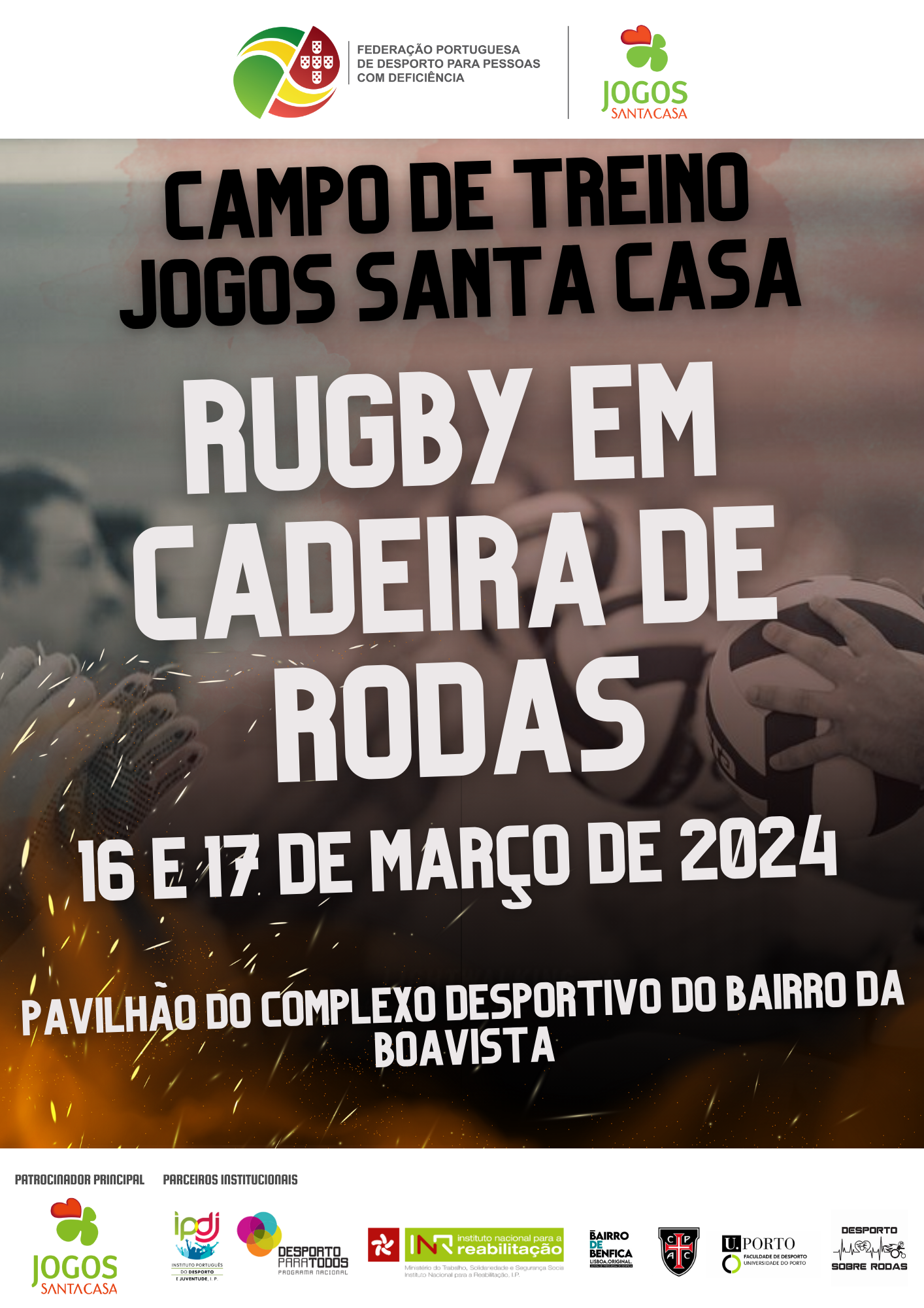 No âmbito do projeto “Rugby Sobre Rodas”, a FPDD irá realizar com o apoio da junta de freguesia de Benfica e do Casa Pia Atlético Clube (CPAC) “I Campo de Treino Nacional de Rugby em Cadeira de Rodas Jogos Santa Casa – Estágio Nacional 2024”, nos dias 16 e 17 de março, no Complexo Desportivo Bairro da Boavista.