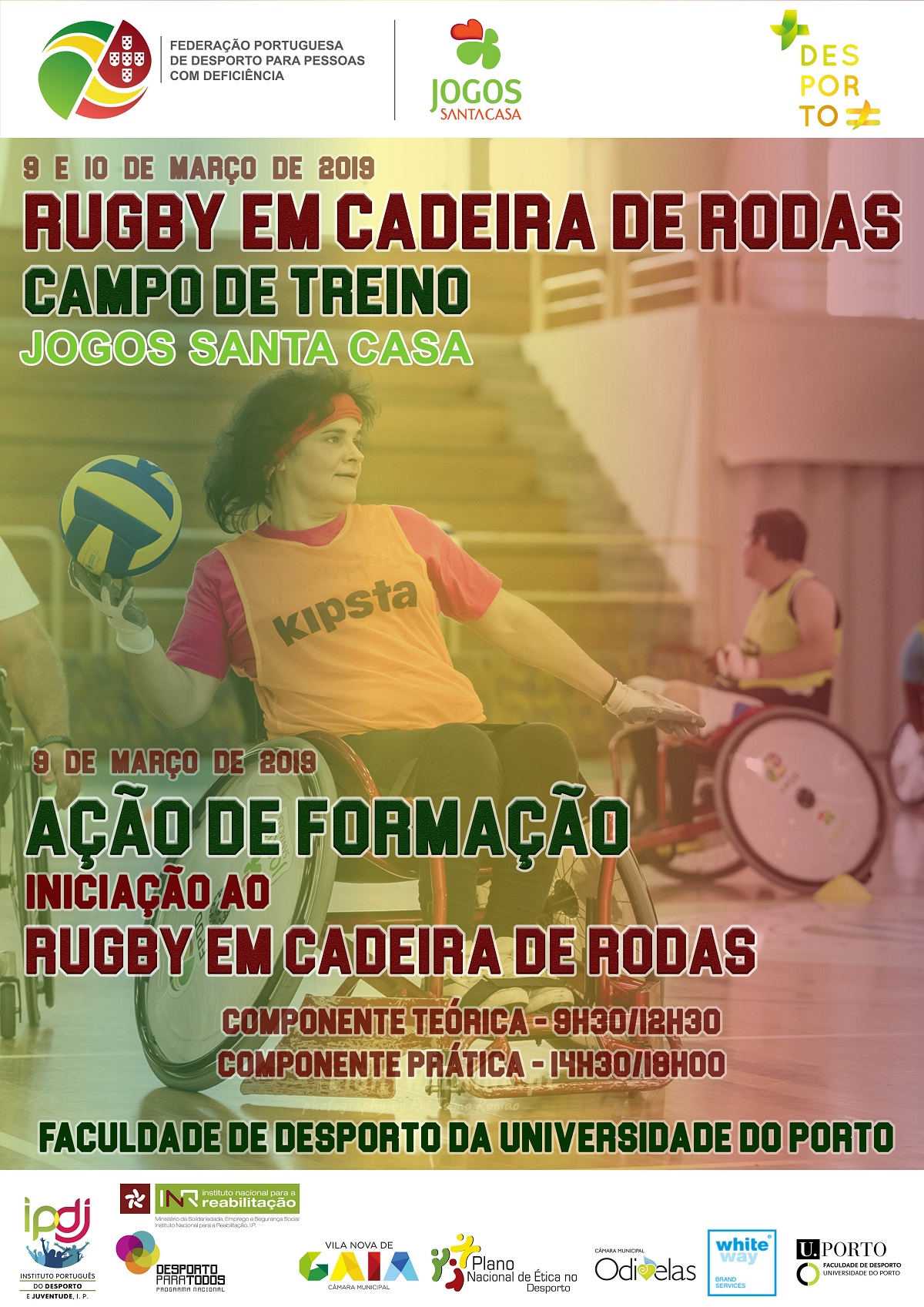 No âmbito do projeto + Desporto ≠, a Federação Portuguesa de Desporto para Pessoas com Deficiência vai organizar o I Campo de Treino de Rugby em Cadeira de Rodas Jogos Santa Casa do ano 2019, nos dias 9 e 10 de março, na Faculdade de Desporto da Universidade do Porto.