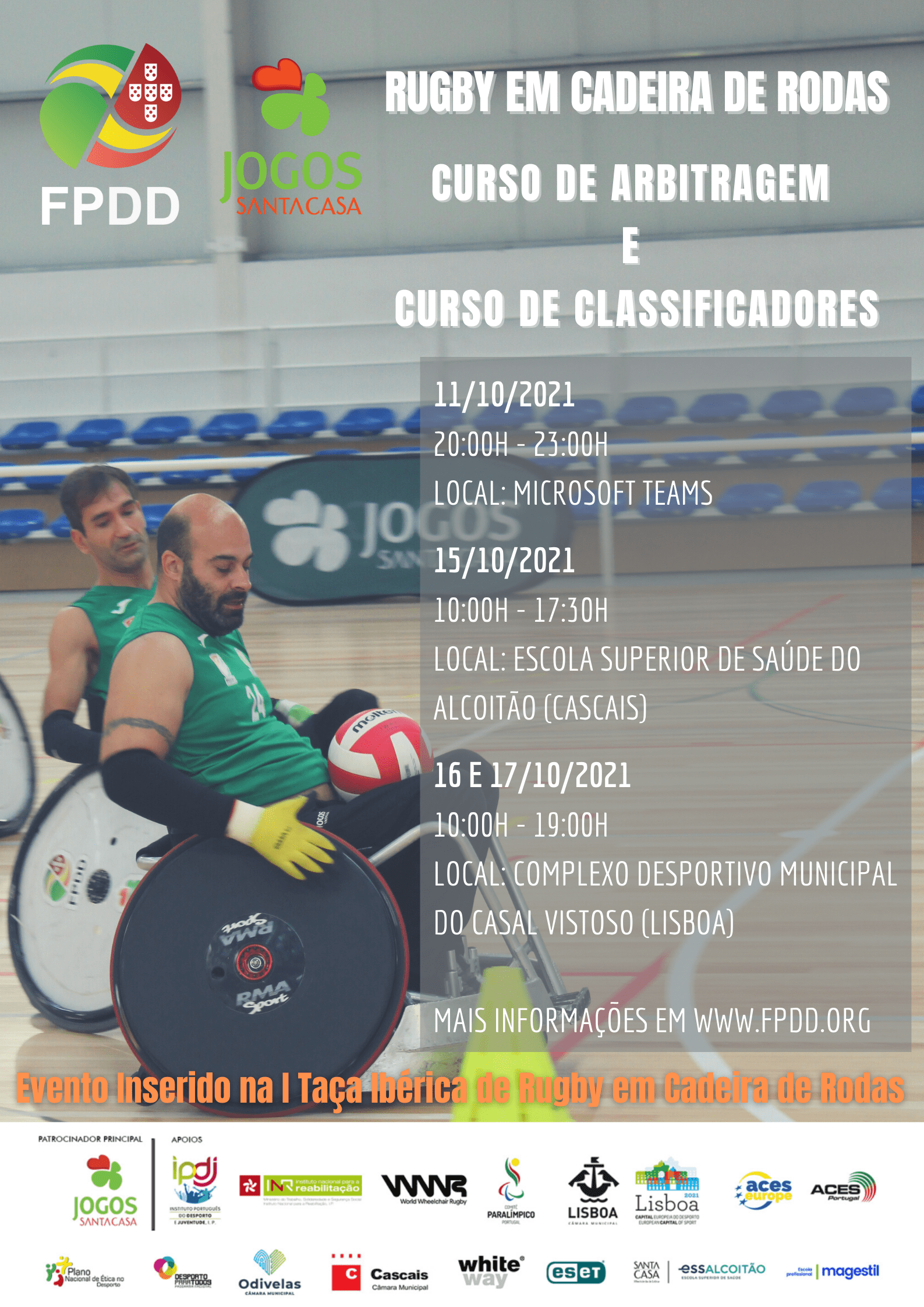 Enquadrado com a realização da I Taça Ibérica de Rugby em Cadeira de Rodas, a FPDD irá promover a realização de dois cursos, com vista à formação de Classificadores e de Árbitros e Oficiais de Mesa de Rugby em Cadeira de Rodas.