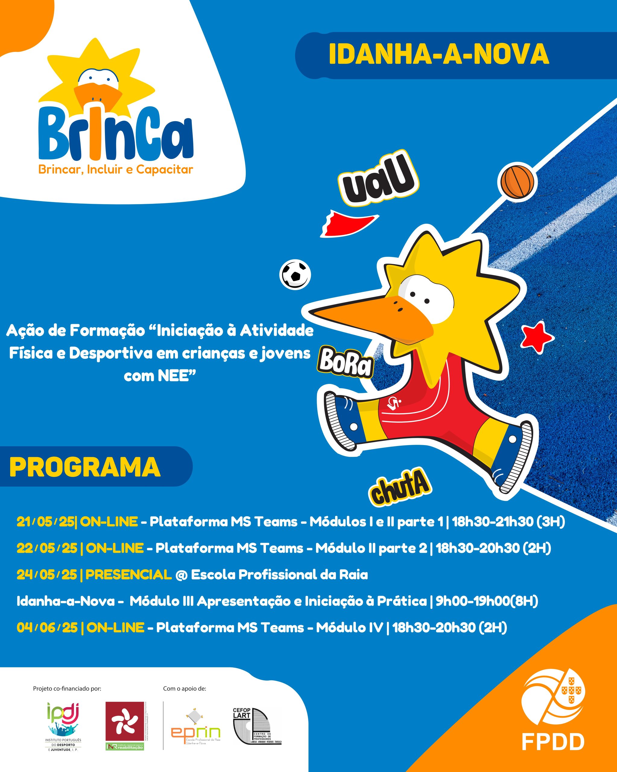 No âmbito do projeto BrInCa – Brincar, Incluir e Capacitar, a Federação Portuguesa de Desporto para Pessoas com Deficiência (FPDD) vai realizar, no concelho de Idanha-a-Nova, a ação de formação “Iniciação à Atividade Física e Desportiva em Crianças e Jovens com Necessidades Educativas Especiais (NEE)”.